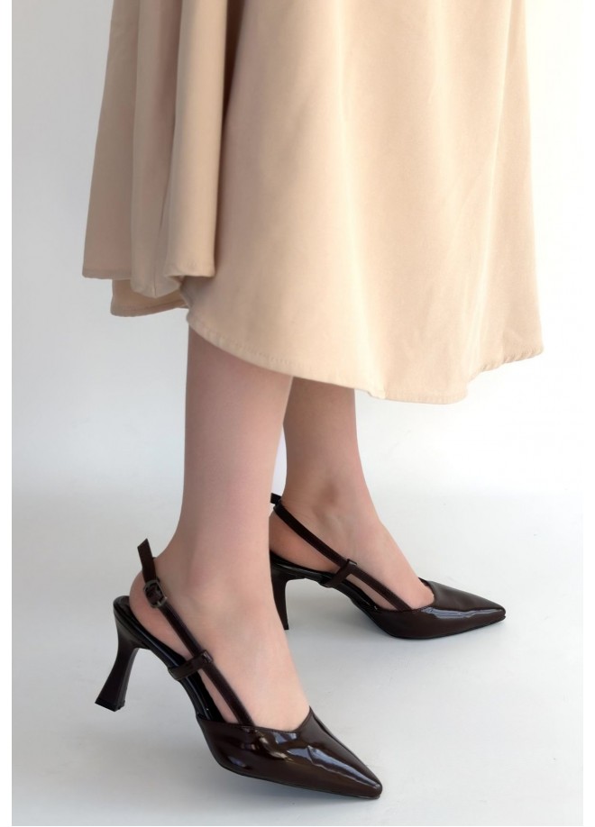Hoost Kahverengi Rugan Topuklu Ayakkabı