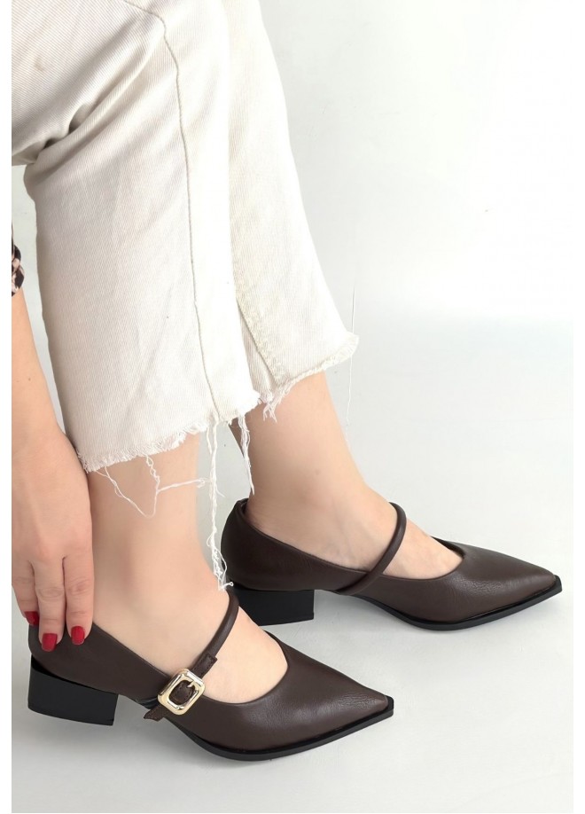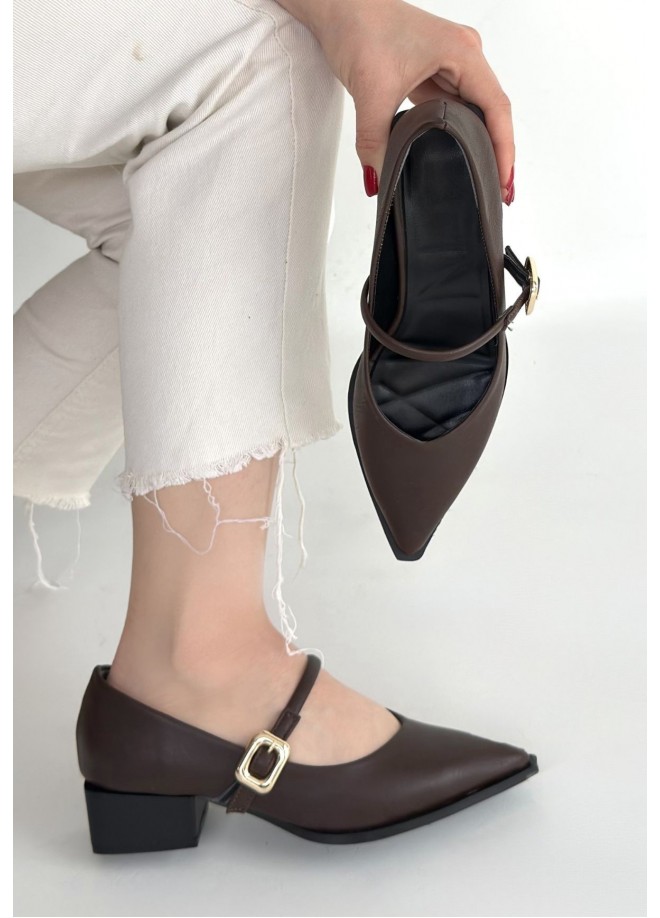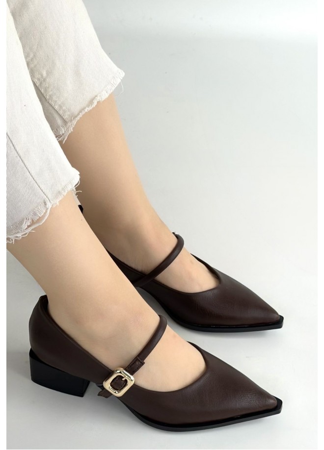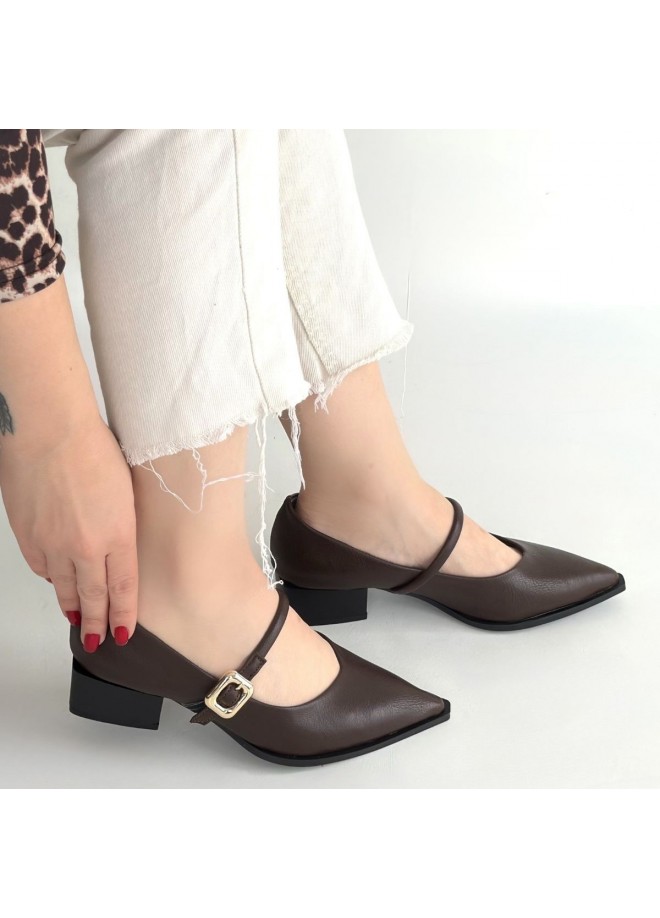 Galye Kahverengi Cilt Topuklu Ayakkabı