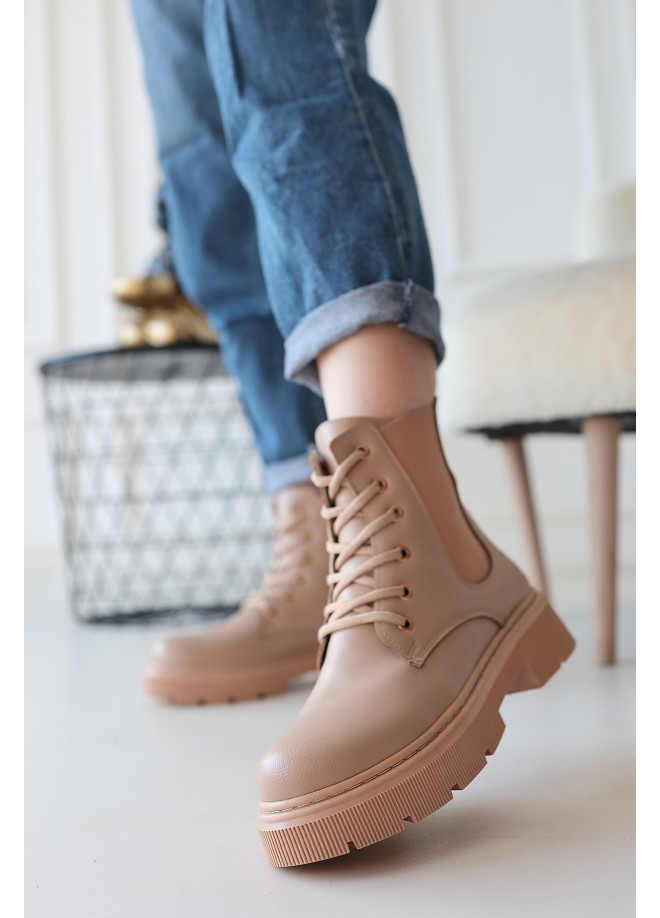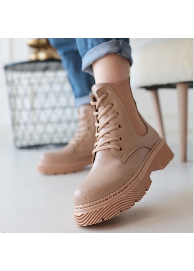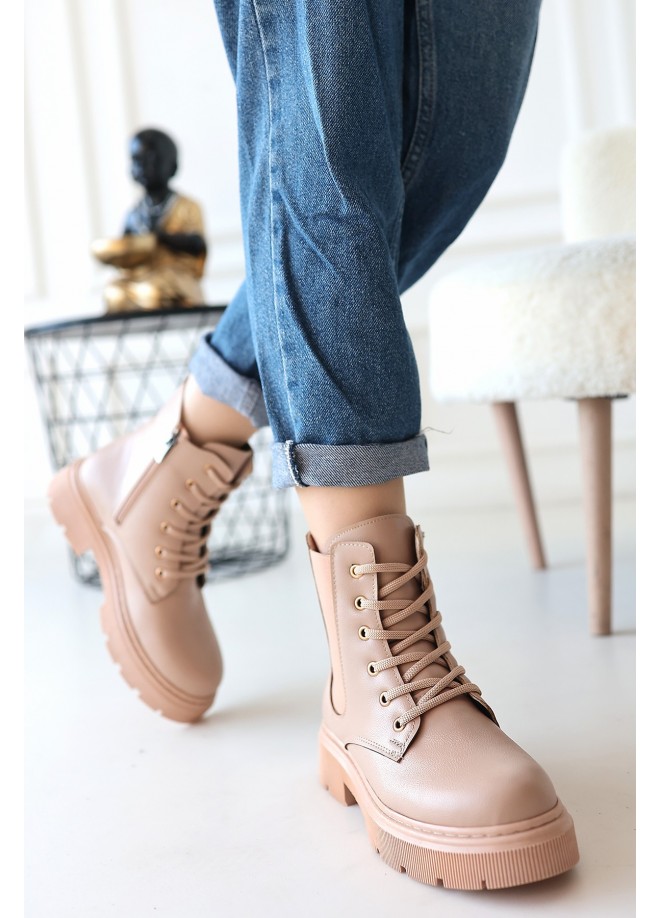 Detay : Topuklu Yandan Fermuarlı Lastikli Bağcıklı Bot