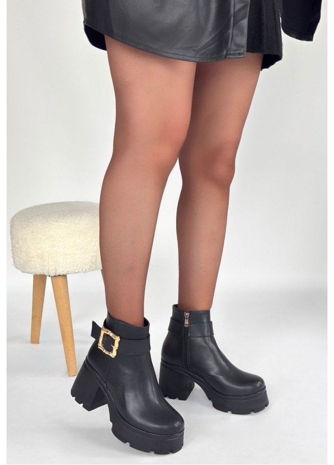 Pinma Siyah Cilt Topuklu Bot
