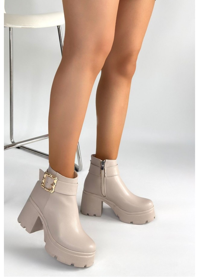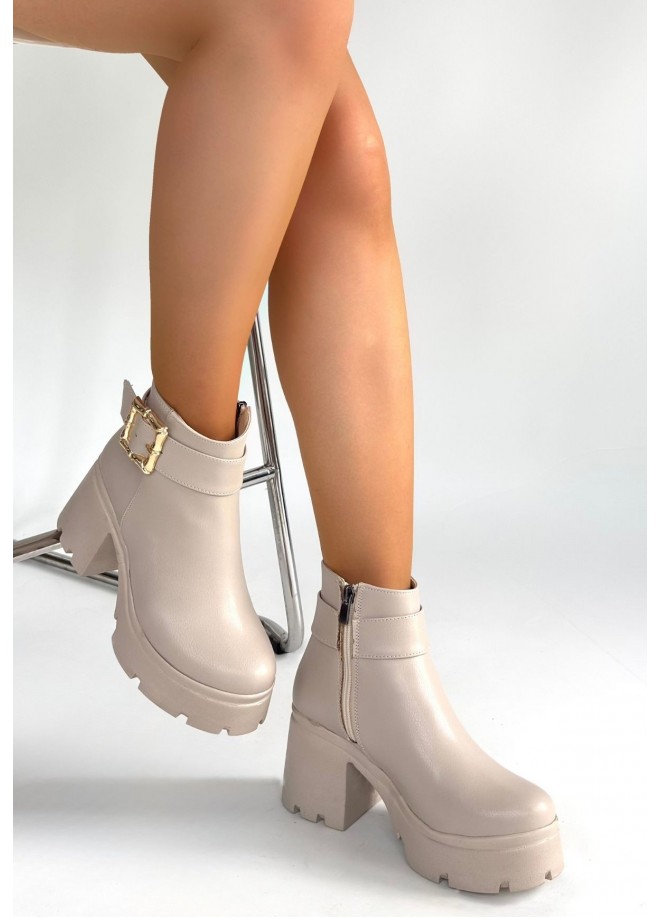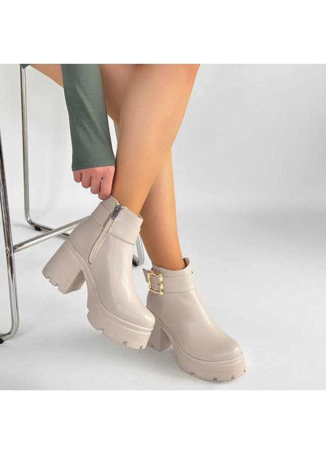 Pinma Bej Cilt Topuklu Bot