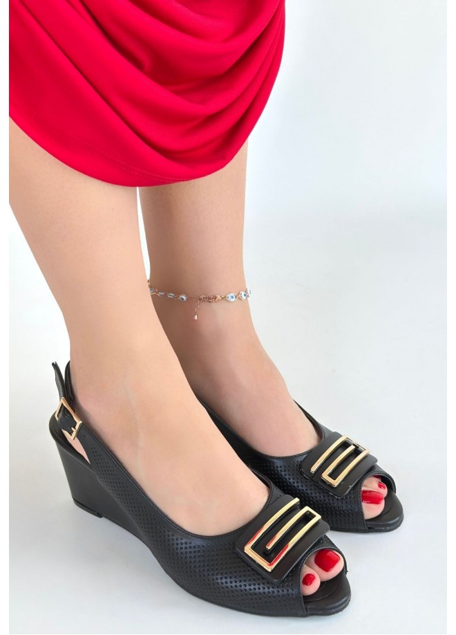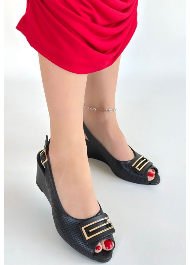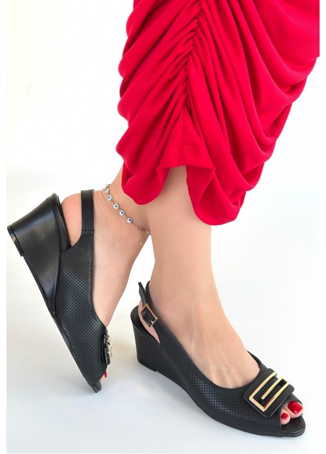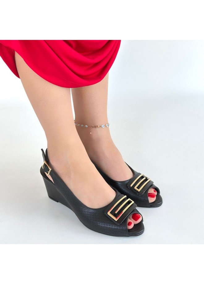 Mamba Siyah Cilt Dolgu Topuk Ayakkabı
