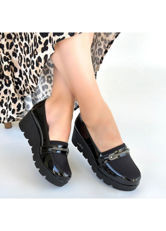 Kear Siyah Rugan Dolgu Topuk Ayakkabı