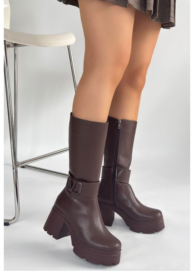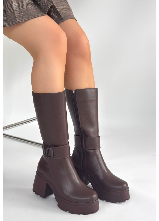 Etiketler: Moki, Kahverengi, Cilt, Topuklu, Çizme