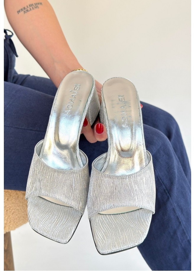 Luart Gümüş Simli Topuklu Terlik
