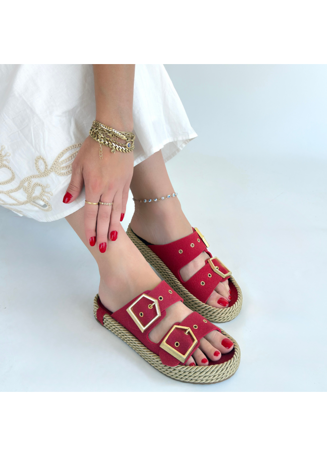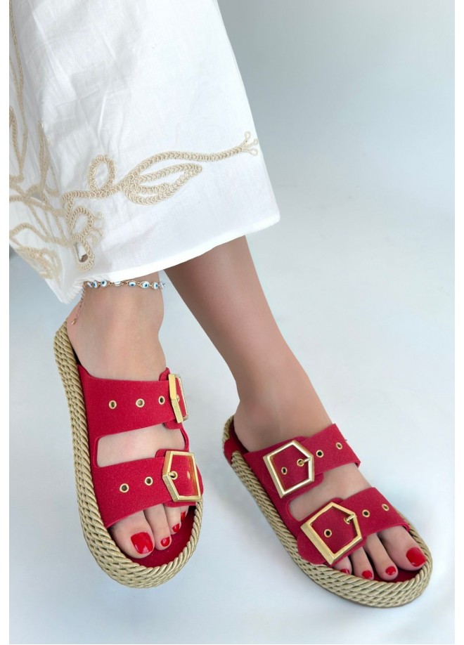İces Kırmızı Nubuk Terlik