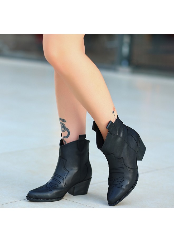 Akver Siyah Cilt Topuklu Bot