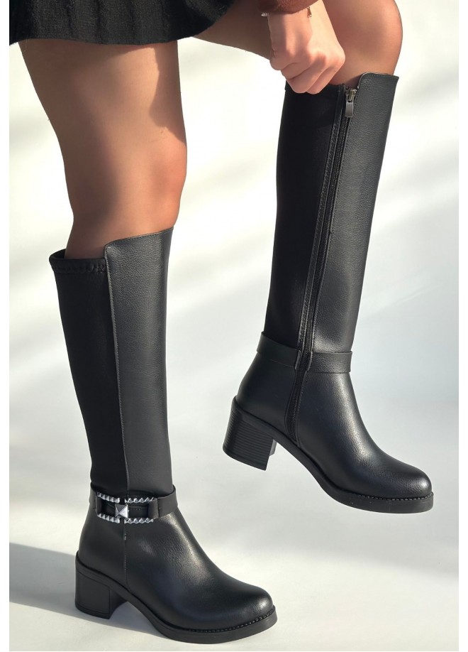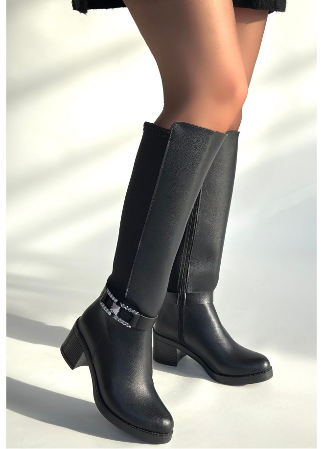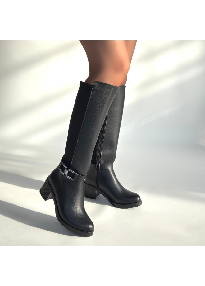 Emrat Siyah Cilt Topuklu Çizme