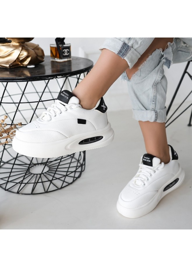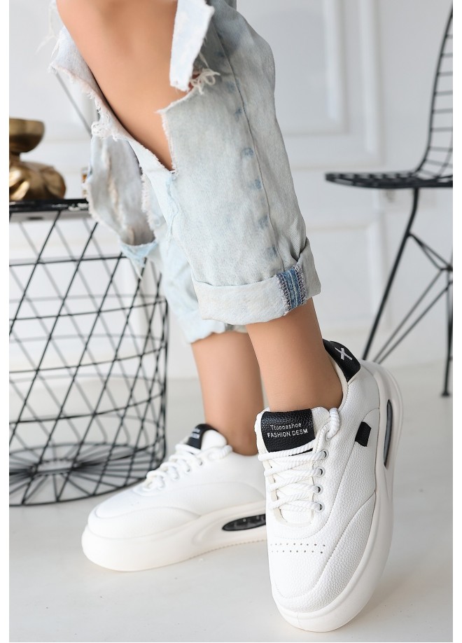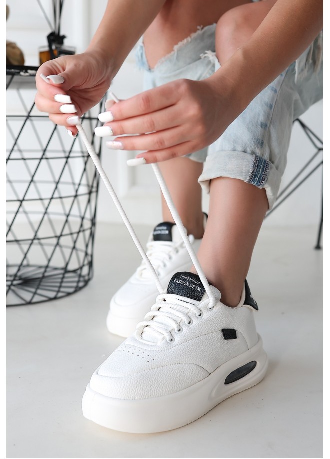 Chris Beyaz Cilt Siyah Detaylı Bağcıklı Spor Ayakkabı