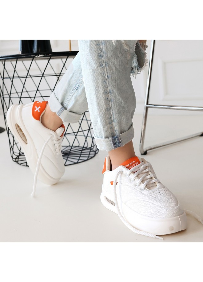 Chris Beyaz Cilt Turuncu Detaylı Bağcıklı Spor Ayakkabı