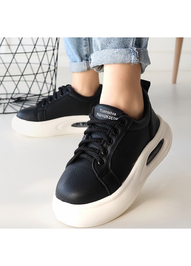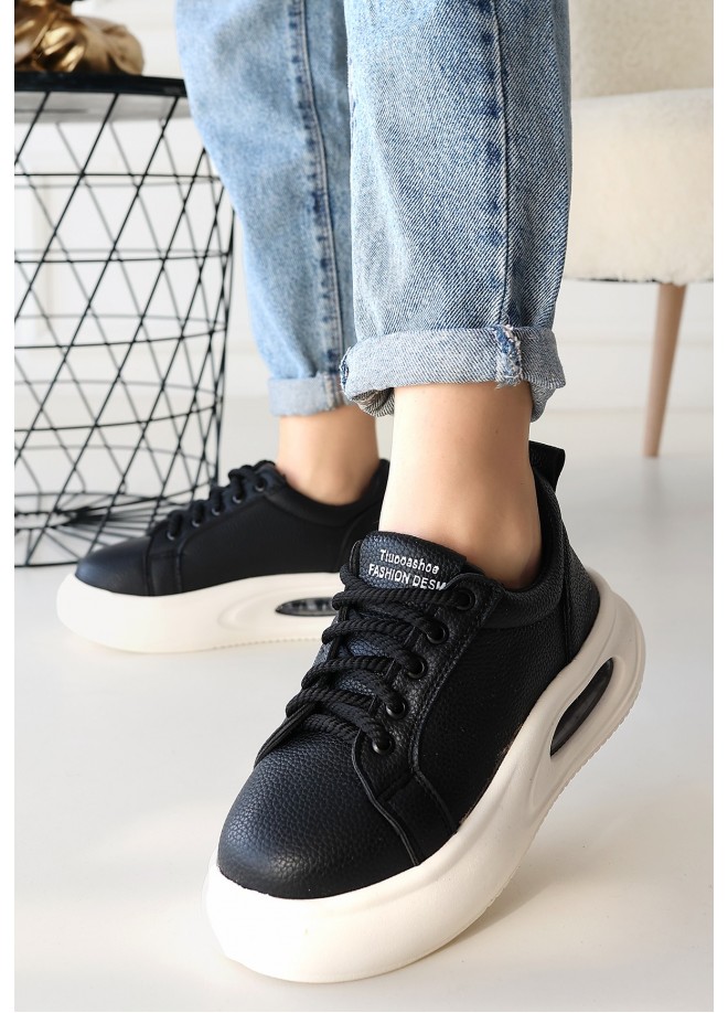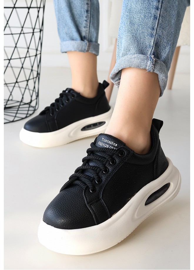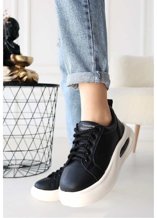 Chris Siyah Cilt Bağcıklı Spor Ayakkabı