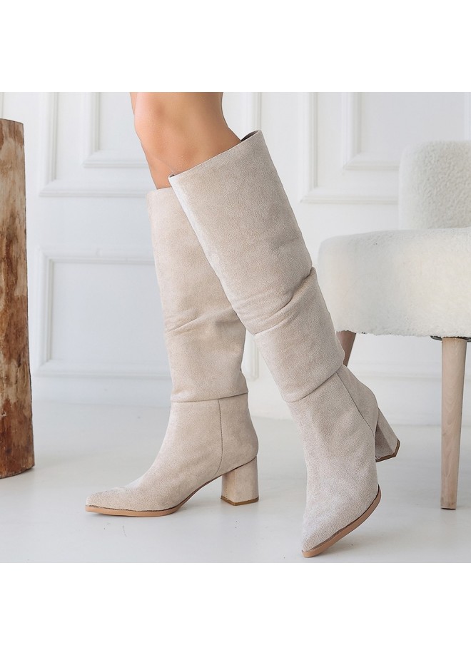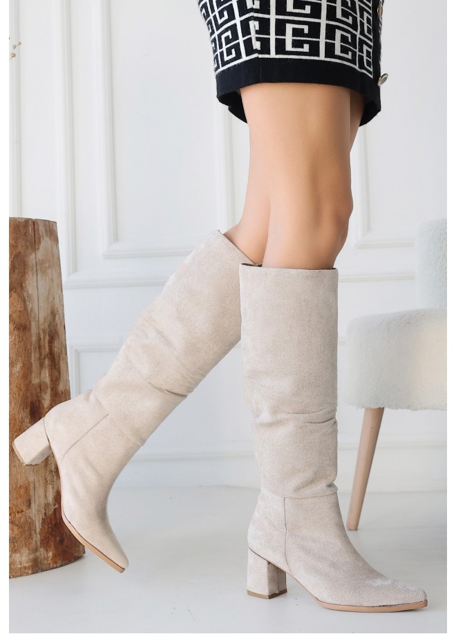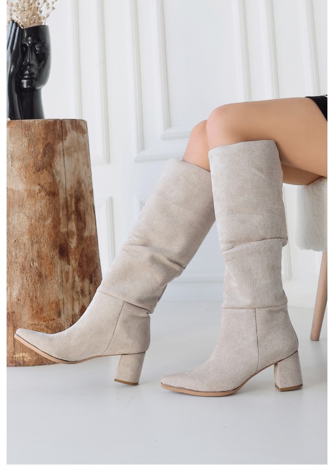 Detay: Topuklu Diz Altı Körüklü Çizme