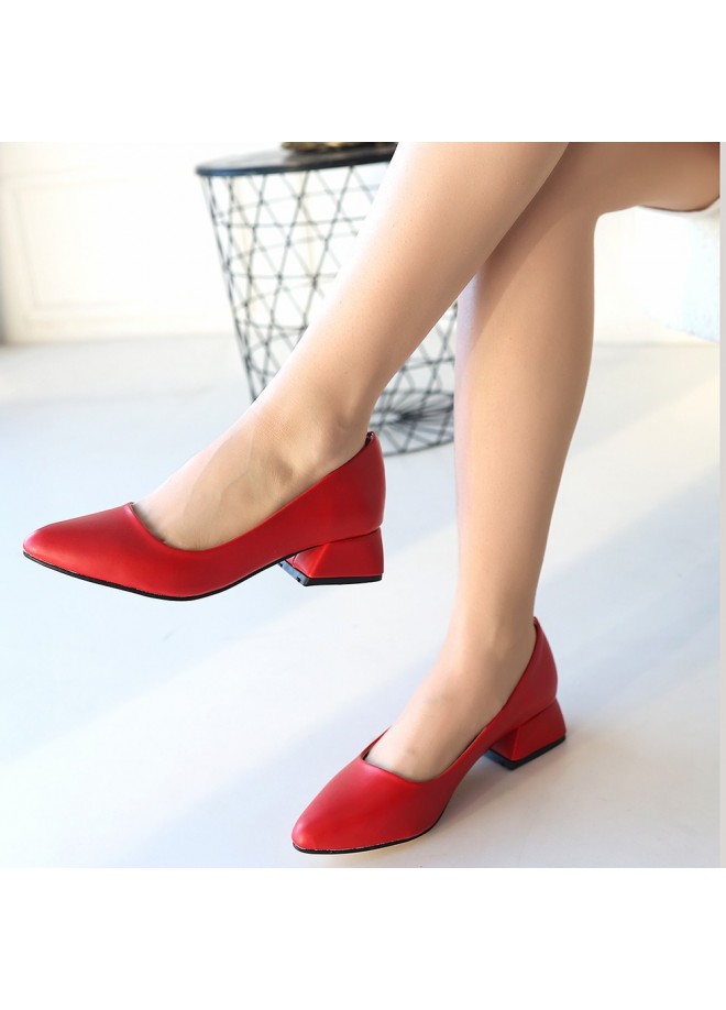 Desniy Kırmızı Cilt Topuklu Ayakkabı