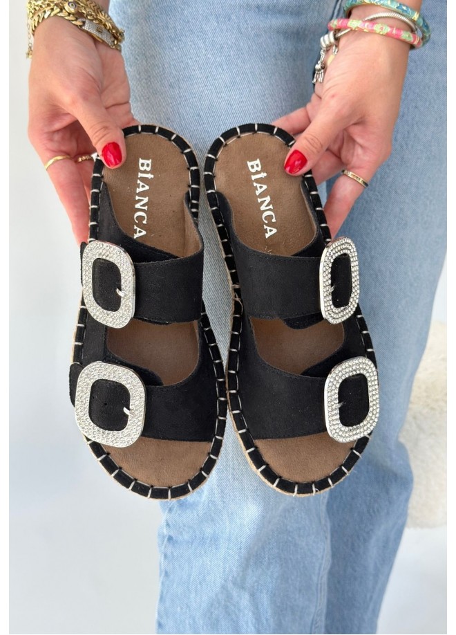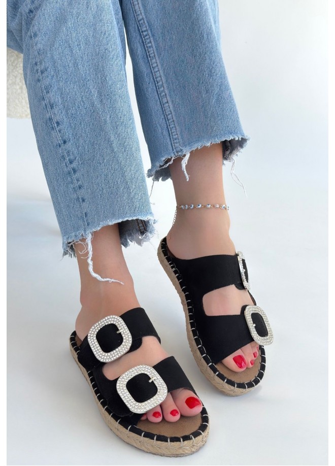 Hertas Siyah Nubuk Tokalı Terlik