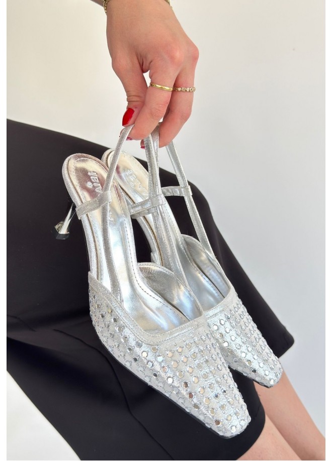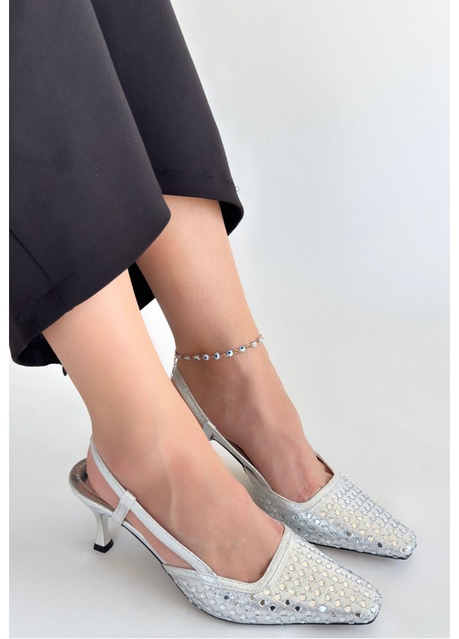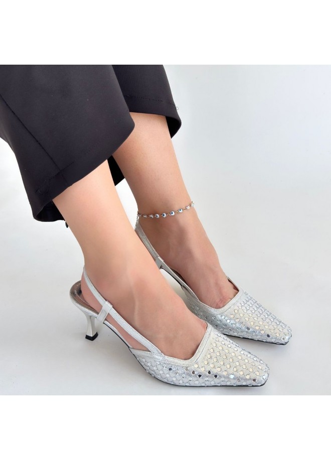 Sione Gümüş Cilt Topuklu Ayakkabı