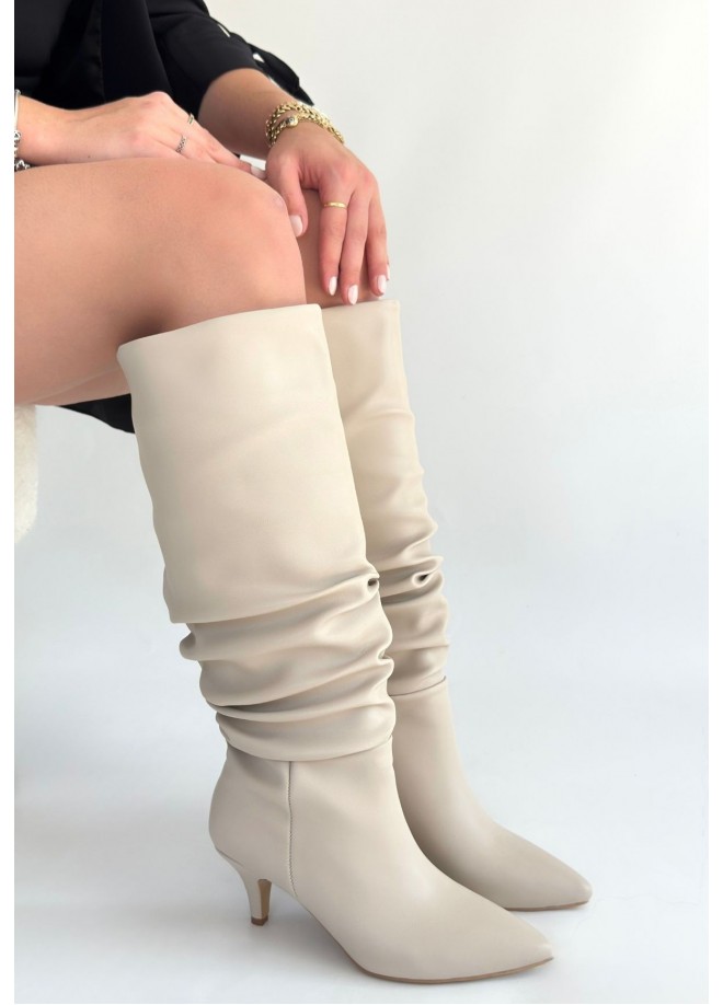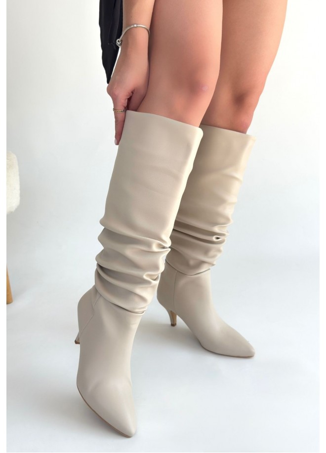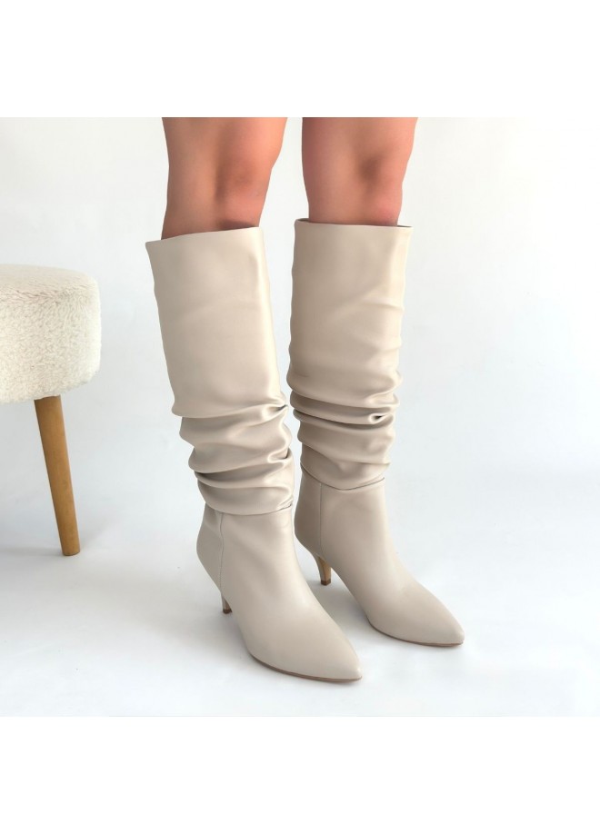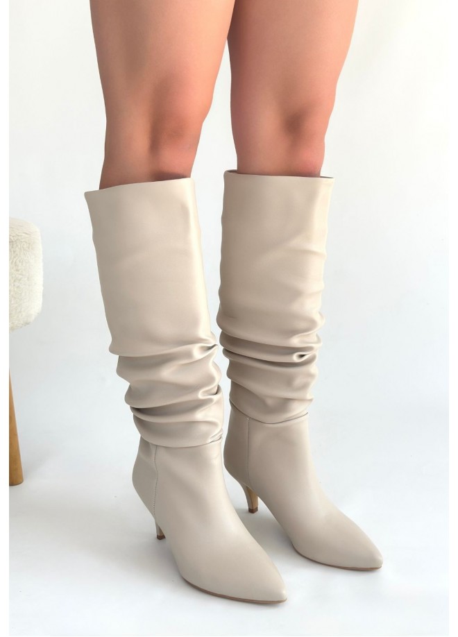 Detay : Topuklu Diz Altı Körüklü Çizme