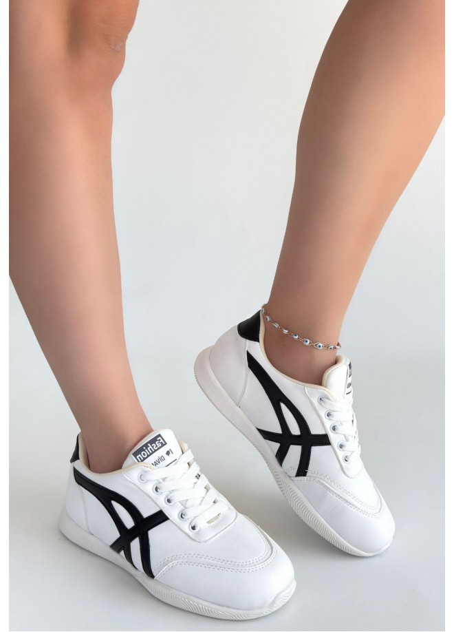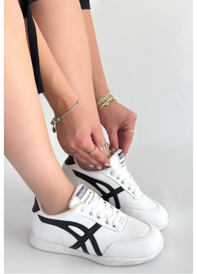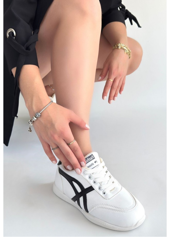 Zlay Beyaz Cilt Siyah Detaylı Bağcıklı Spor Ayakkabı