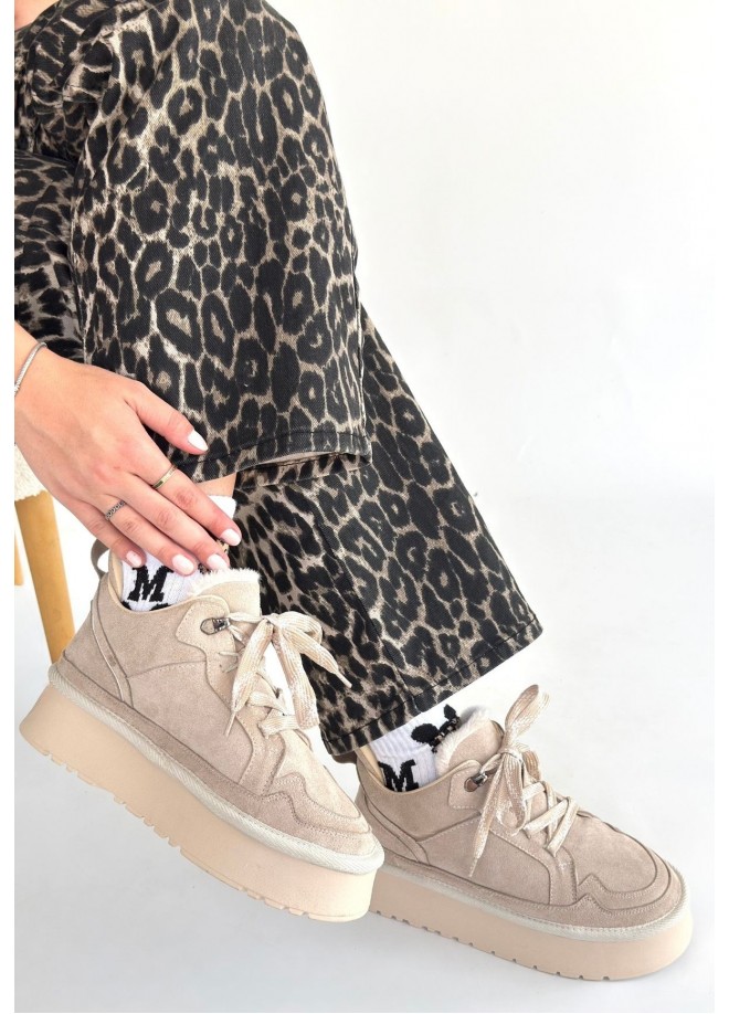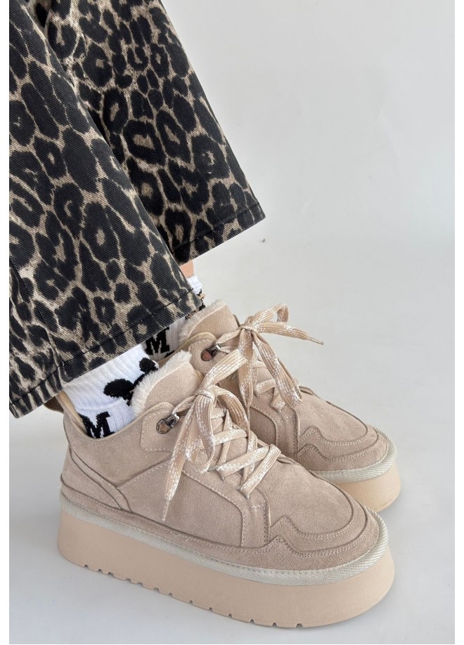 Muden Bej Süet Bağcıklı Bot