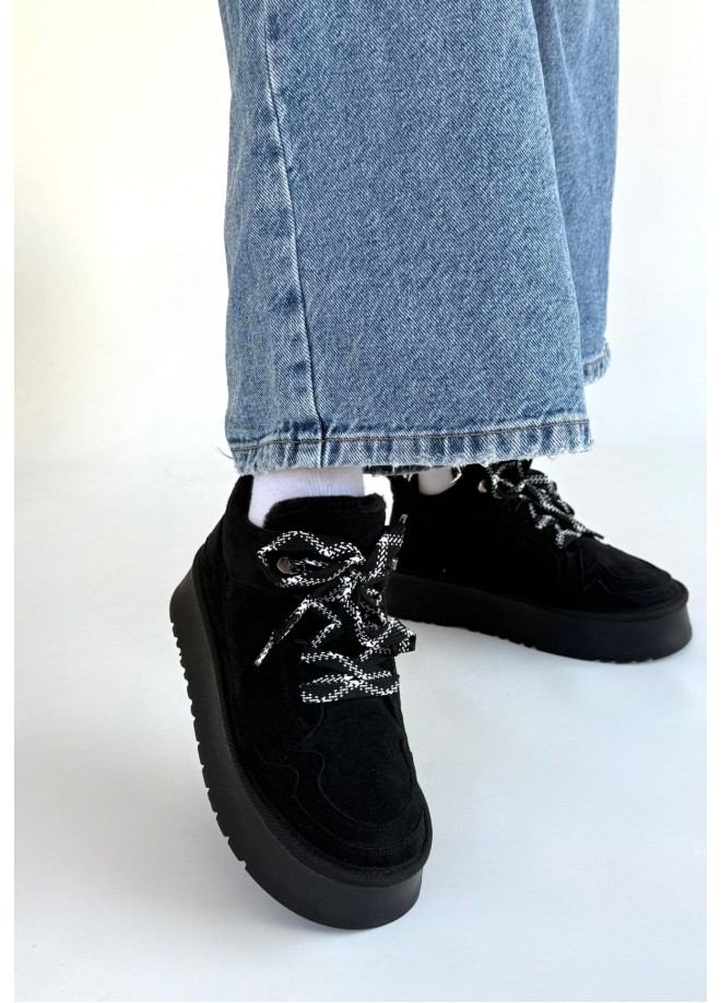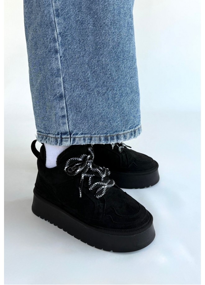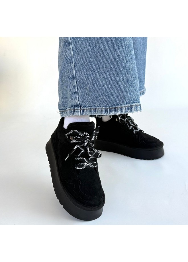 Muden Siyah Süet Bağcıklı Bot