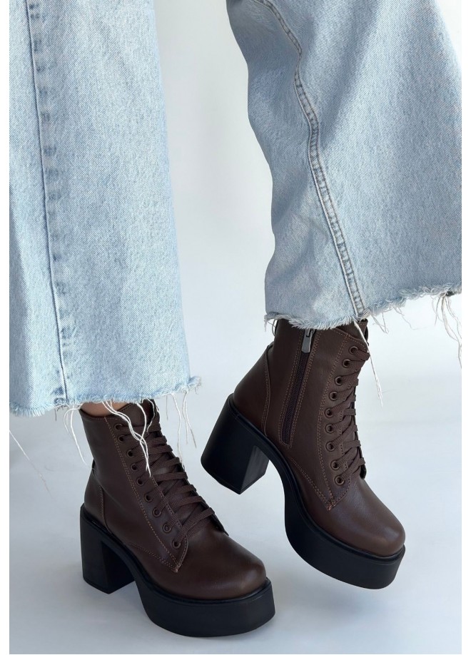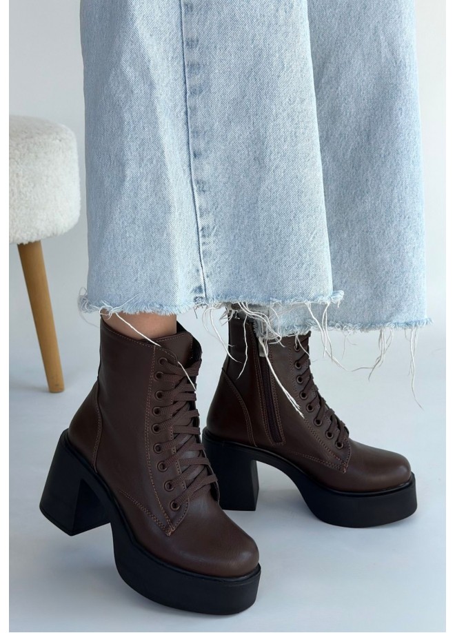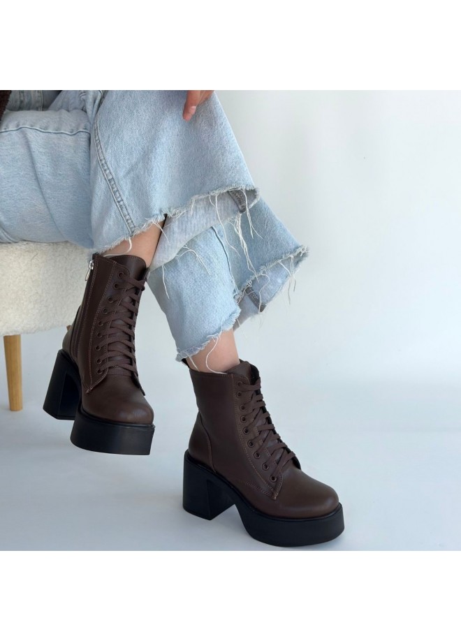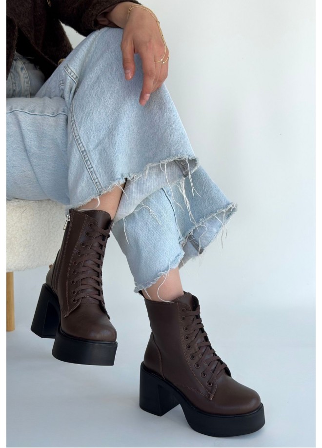 Tsan Kahverengi Cilt Bağcıklı Topuklu Bot