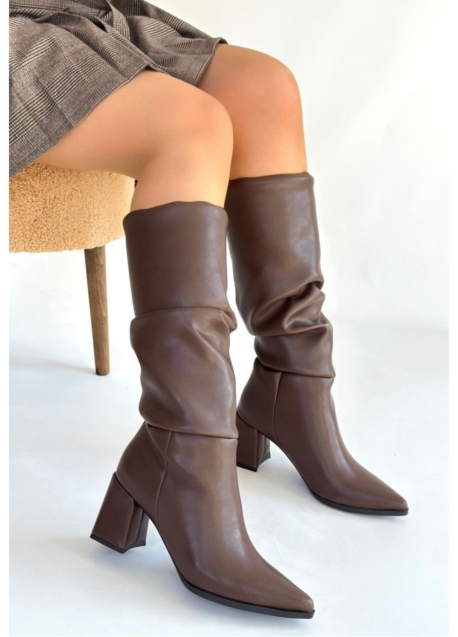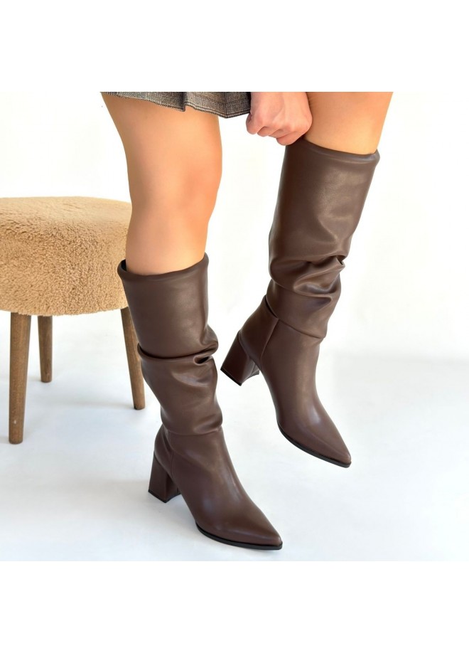 Pitay Kahverengi Cilt Körüklü Topuklu Çizme