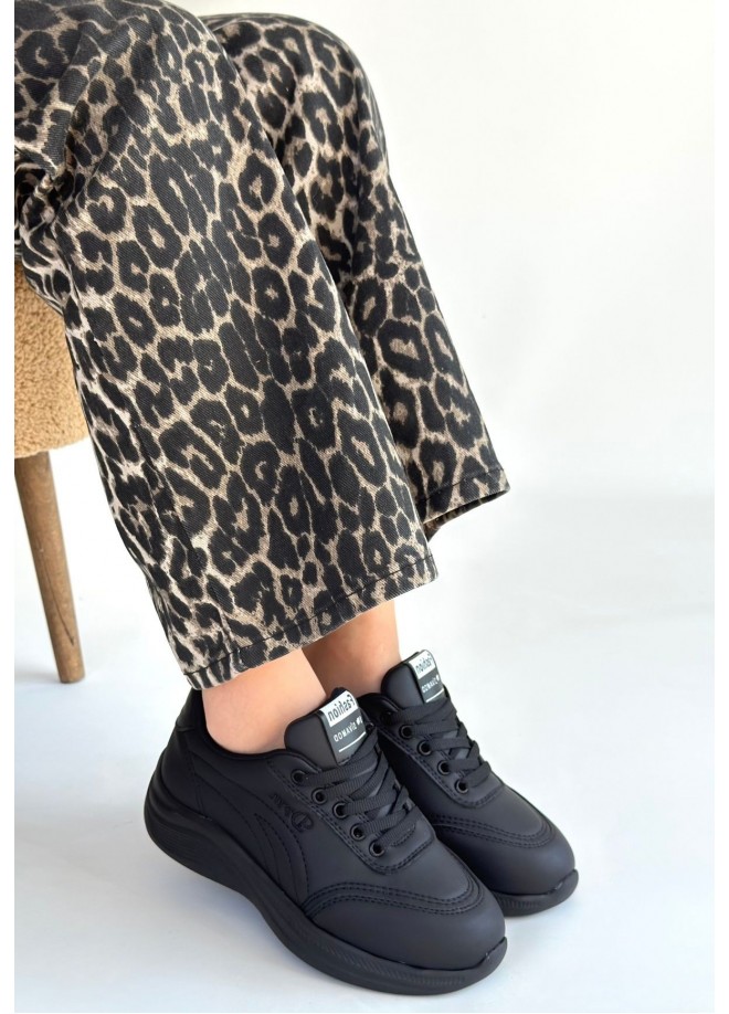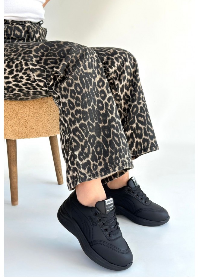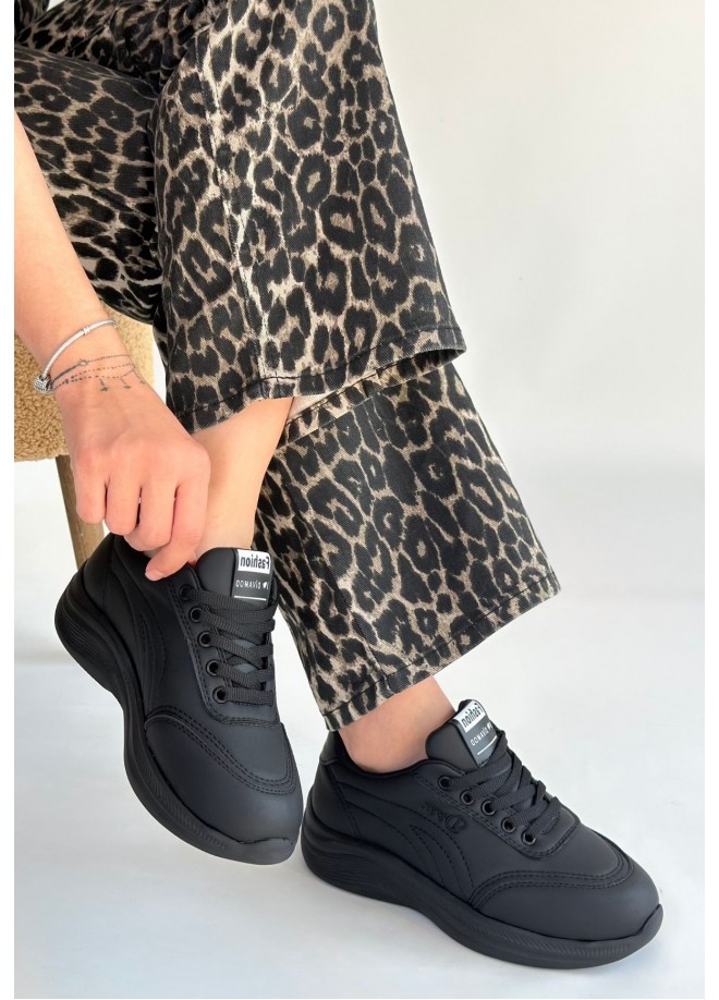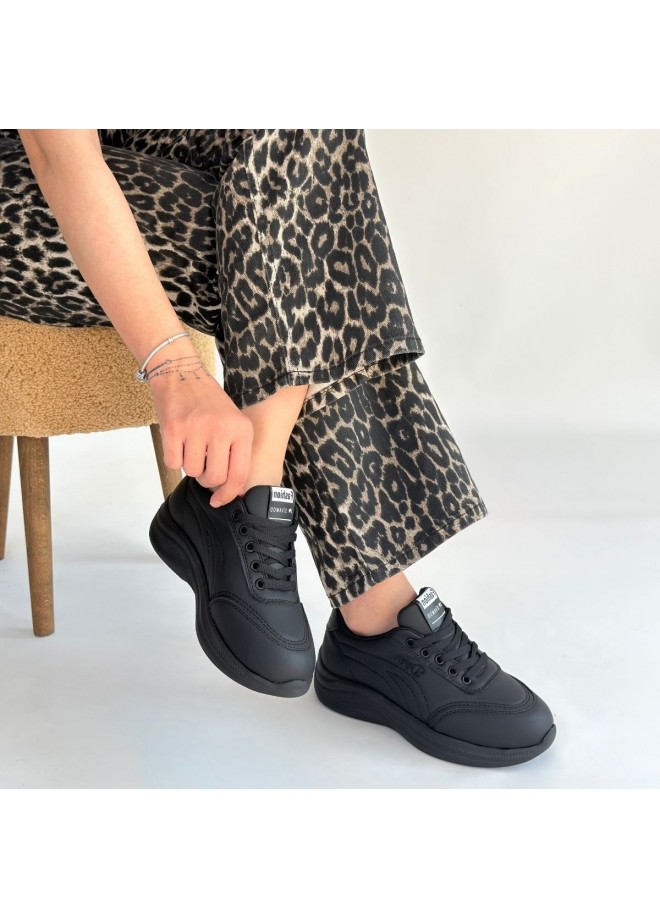 Yejja Siyah Cilt Bağcıklı Spor Ayakkabı