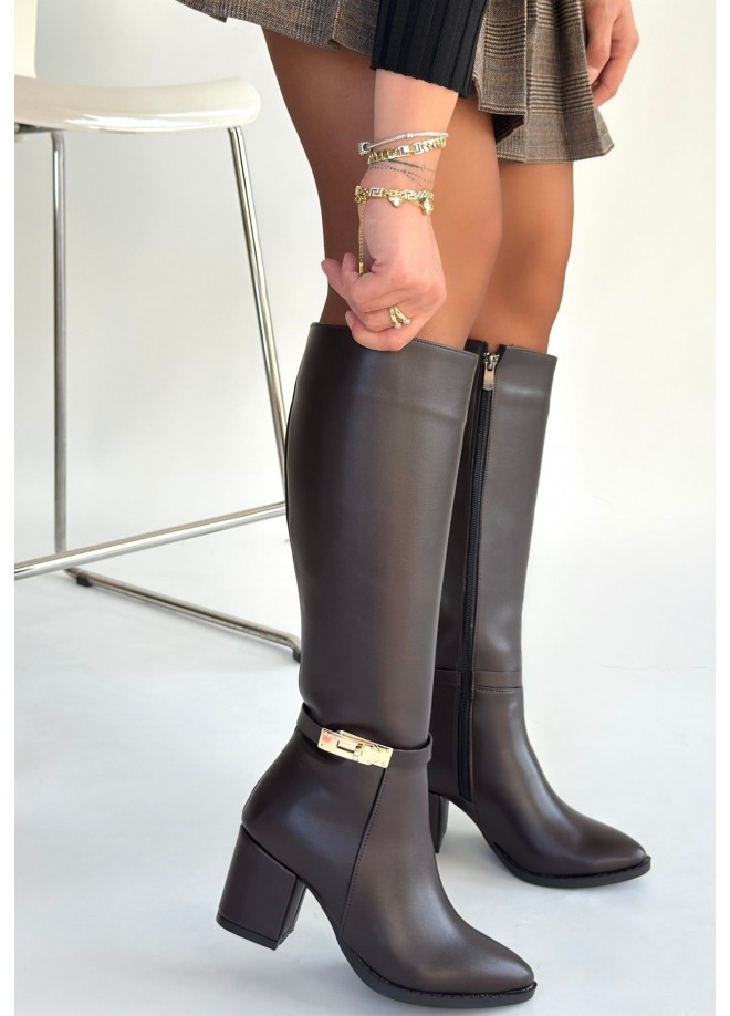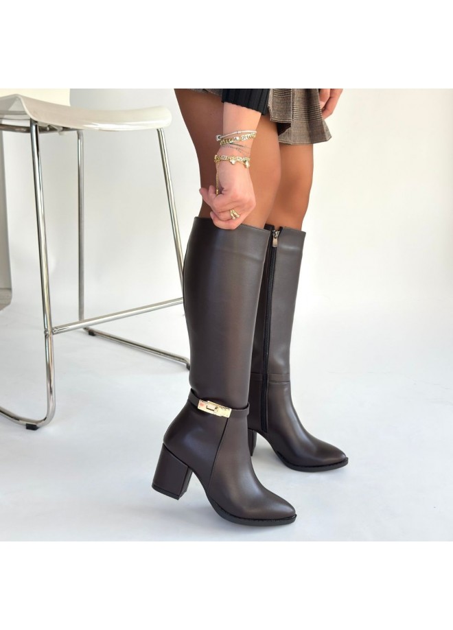 Jeoli Kahverengi Cilt Topuklu Çizme