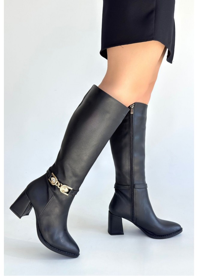 Detay : Topuklu Yandan Fermuarlı Diz Altı Çizme