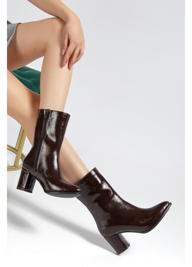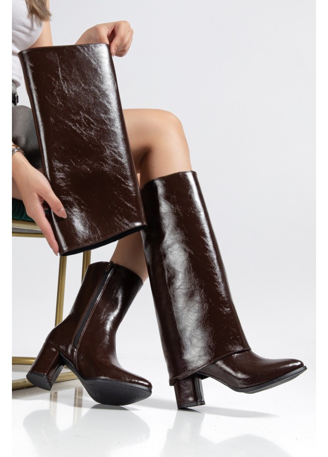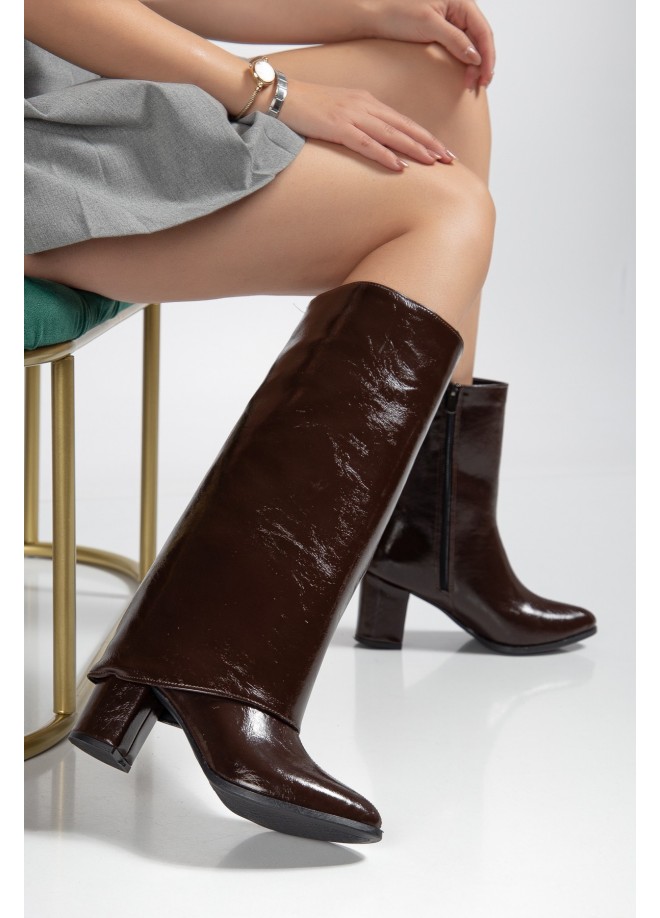Wila Kahverengi Parlak Topuklu Tak Çıkar Çizme