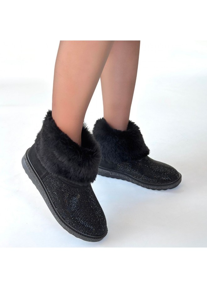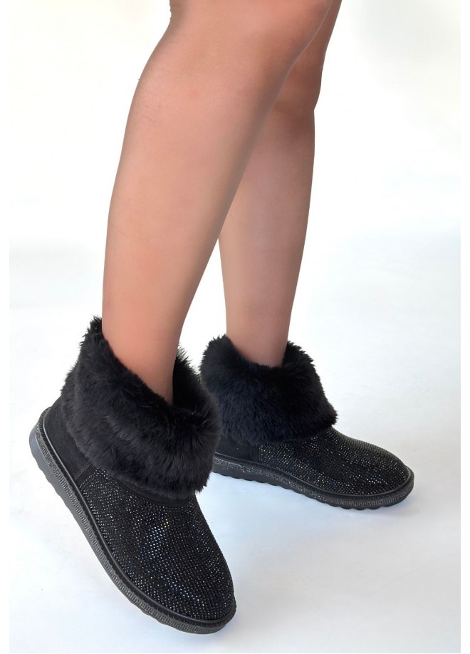 Linka Siyah Süet Siyah Boncuk İşlemeli Bot