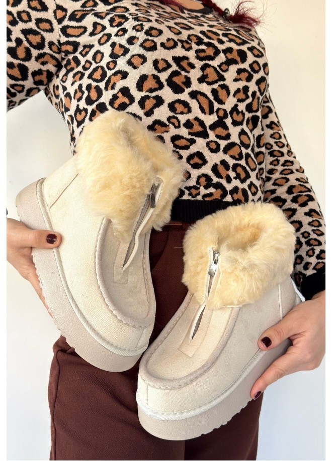 Detay: İçi Kürklü Bot Önden Fermuarlı