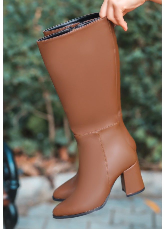Detay : Topuklu Yandan Fermuarlı Diz Altı Çizme