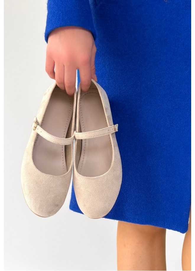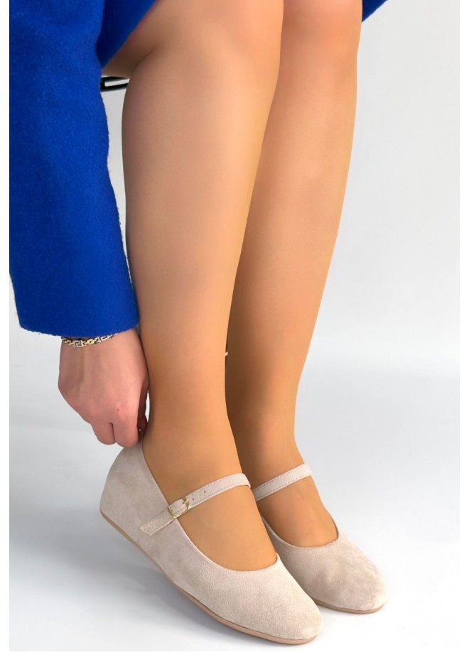 Lossa Bej Süet Kemerli Babet Ayakkabı