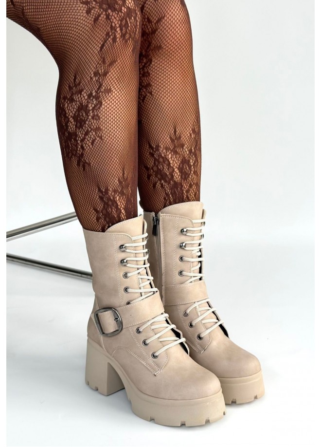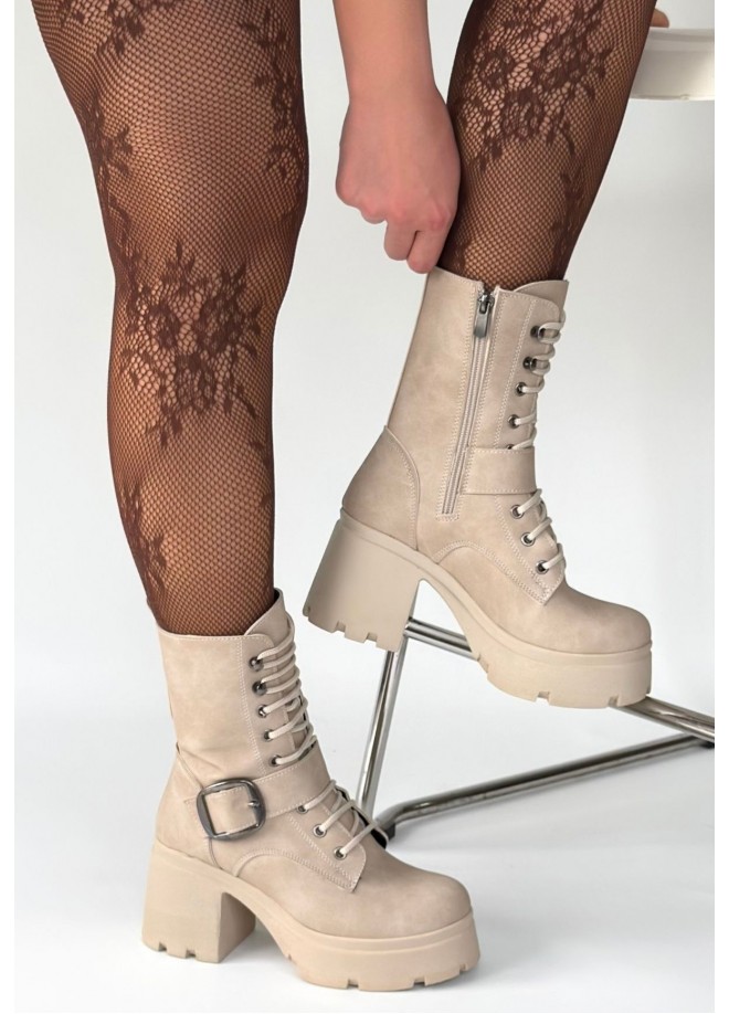 Linma Bej Nubuk Bağcıklı Topuklu Bot