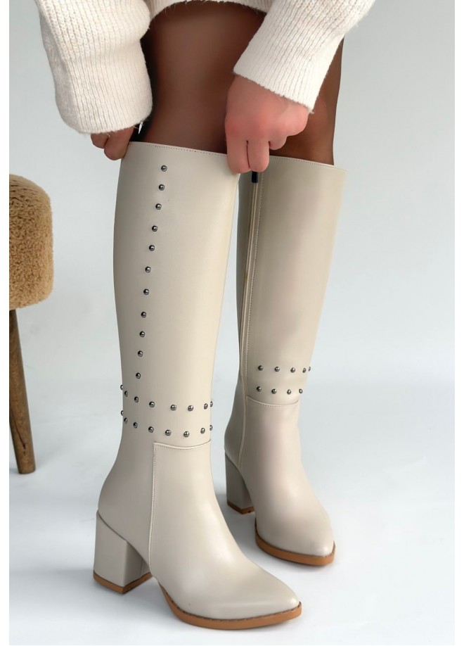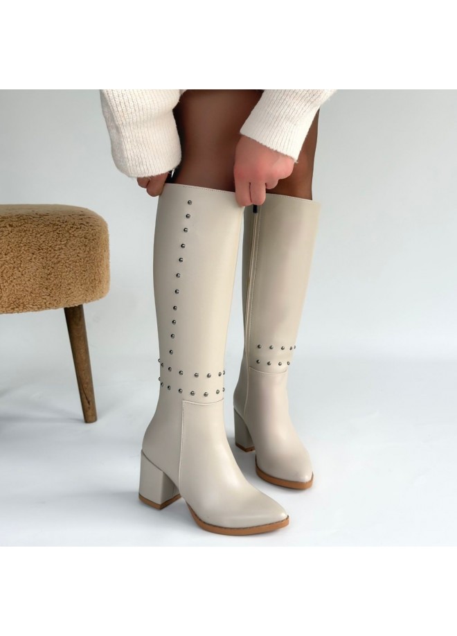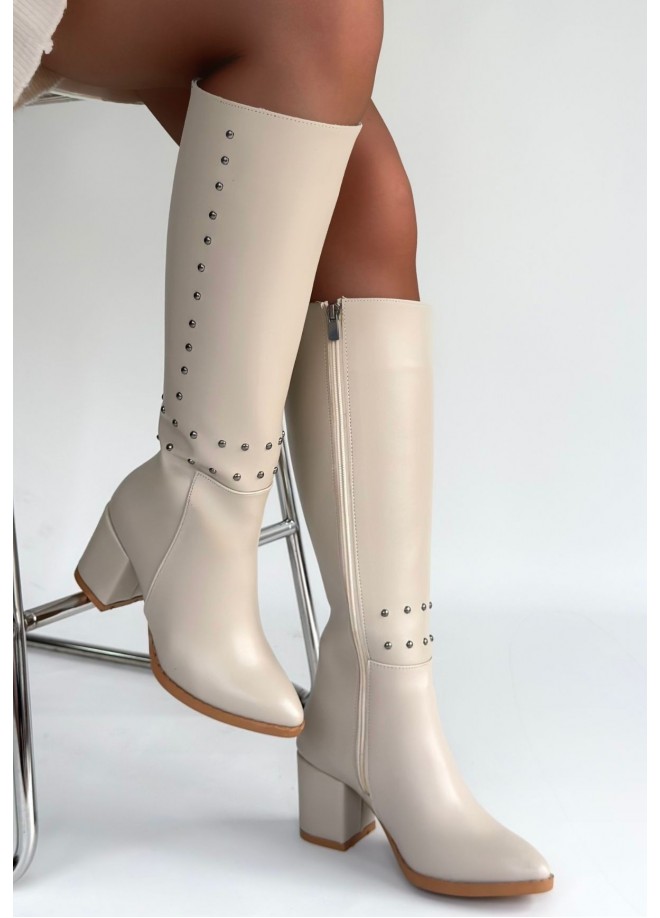 Detay: Topuklu Diz Altı Yandan Fermuarlı Çizme