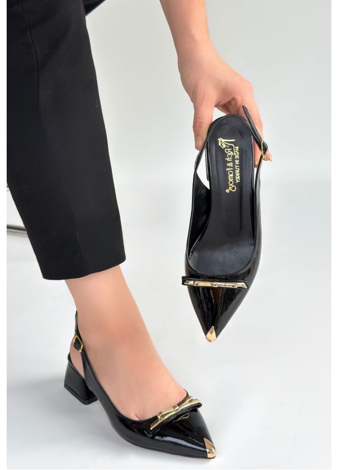 Ricy Siyah Rugan Topuklu Ayakkabı