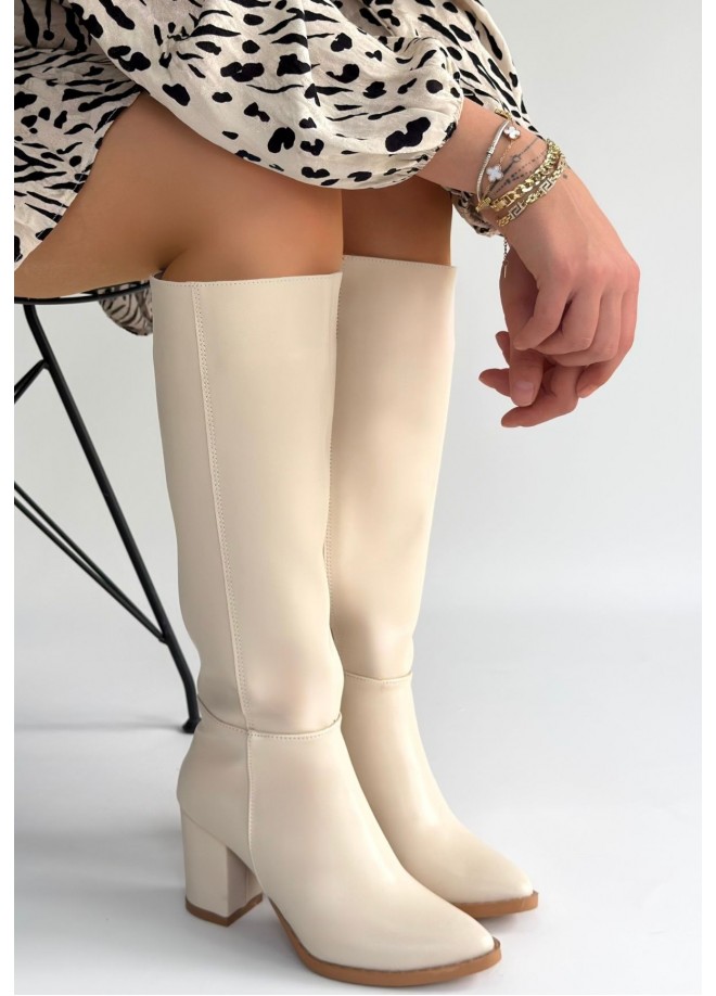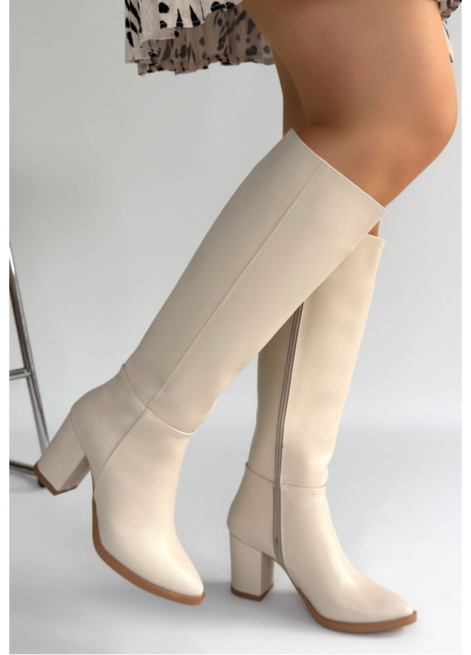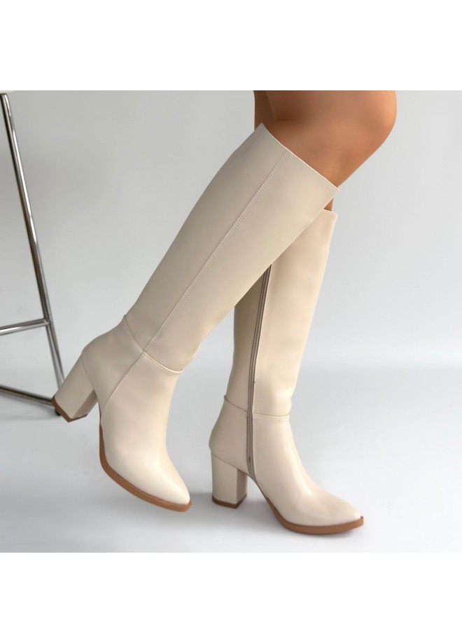 Morena Bej Cilt Bej Tabanlı Topuklu Çizme