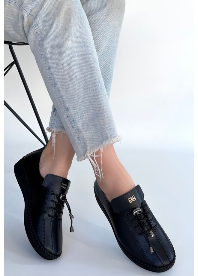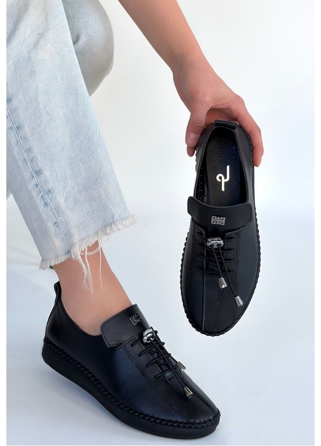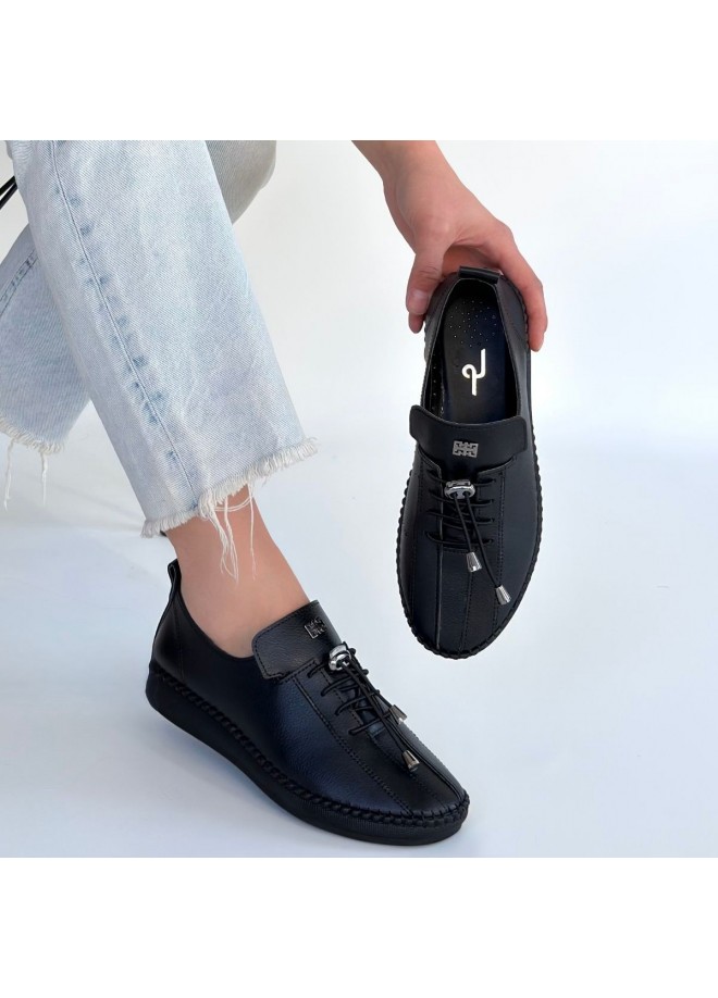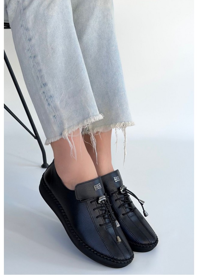 Warte Siyah Deri Bağcıklı Spor Ayakkabı