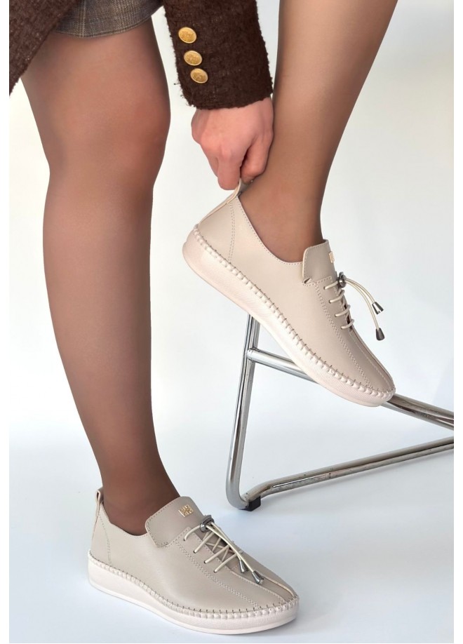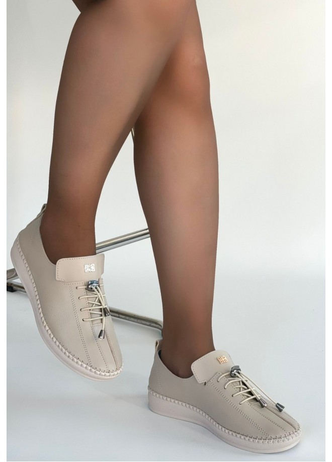 Warte Bej Deri Bağcıklı Spor Ayakkabı