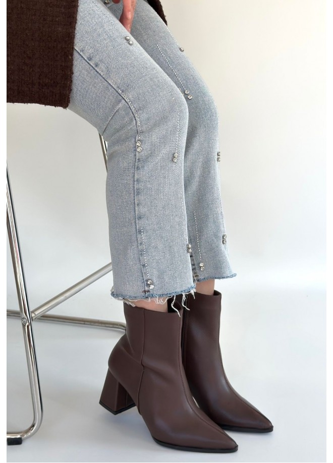 Oter Kahverengi Cilt Topuklu Bot