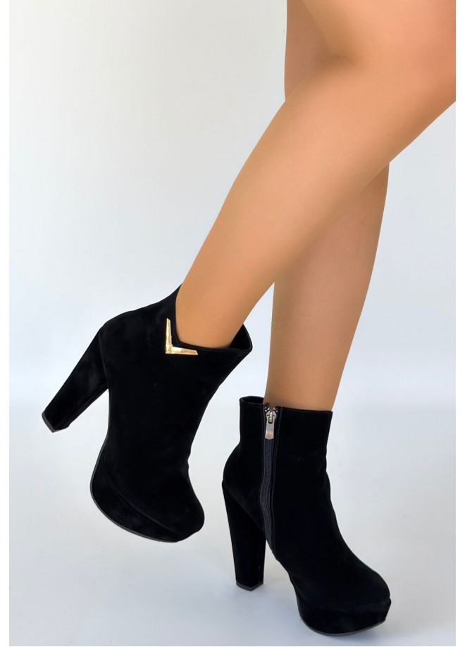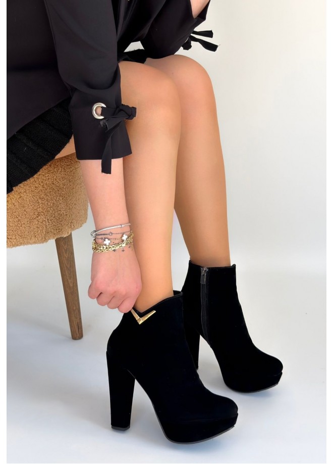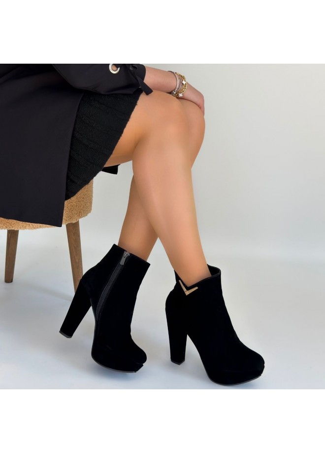 Denta Siyah Süet Topuklu Bot