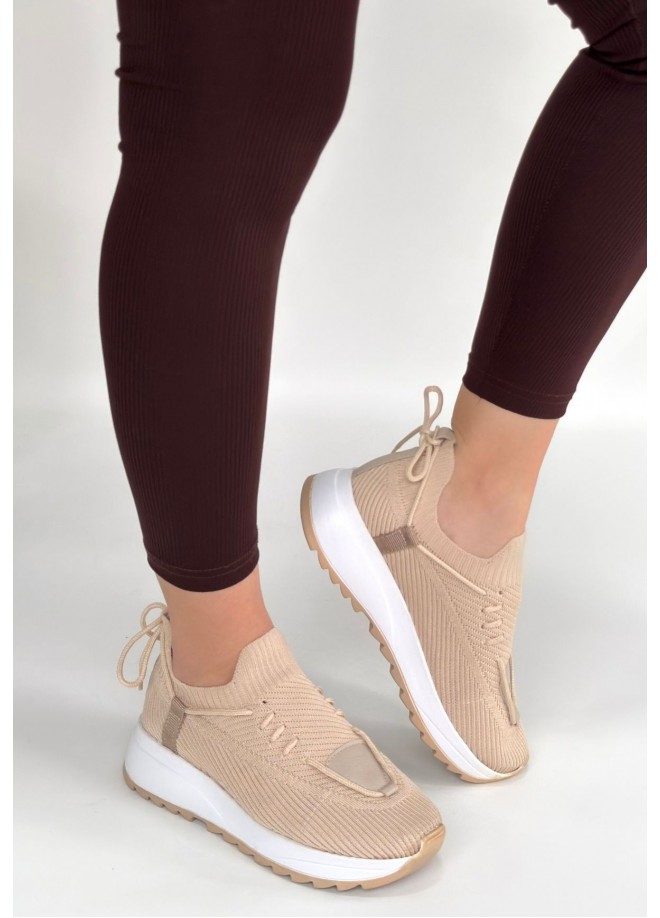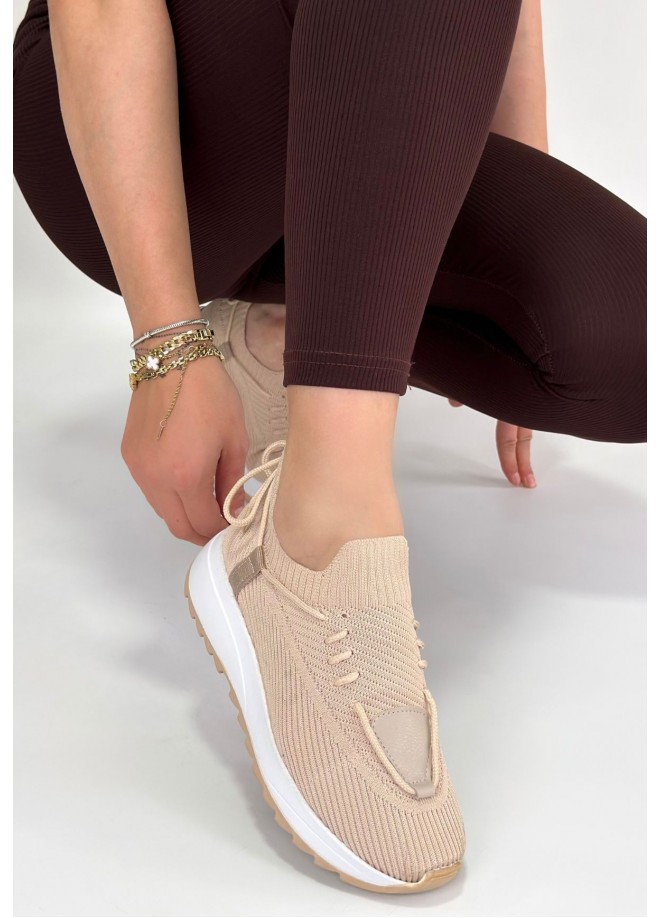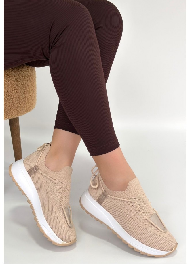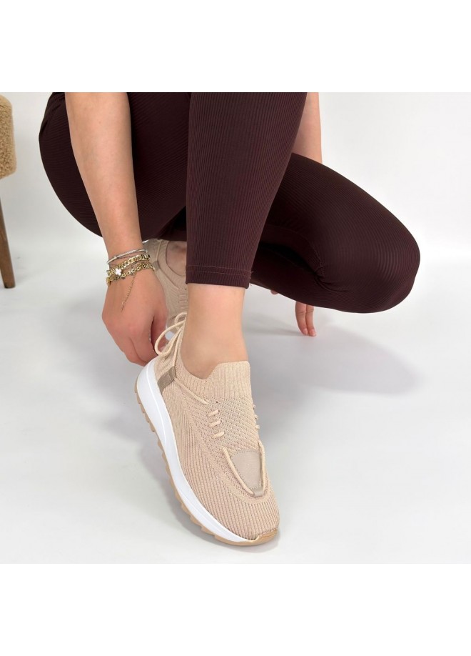 Renji Bej Triko Bağcıklı Spor Ayakkabı
