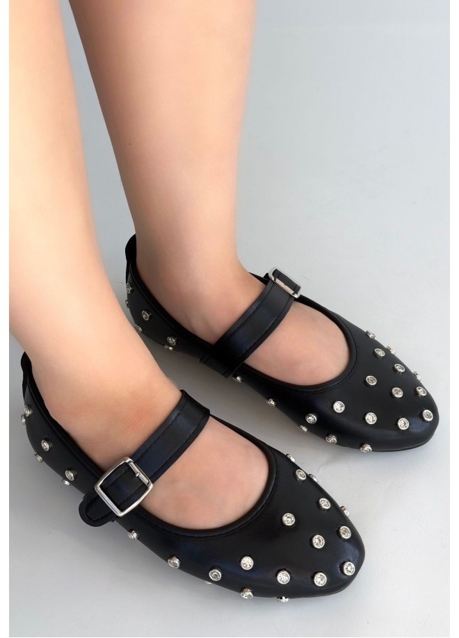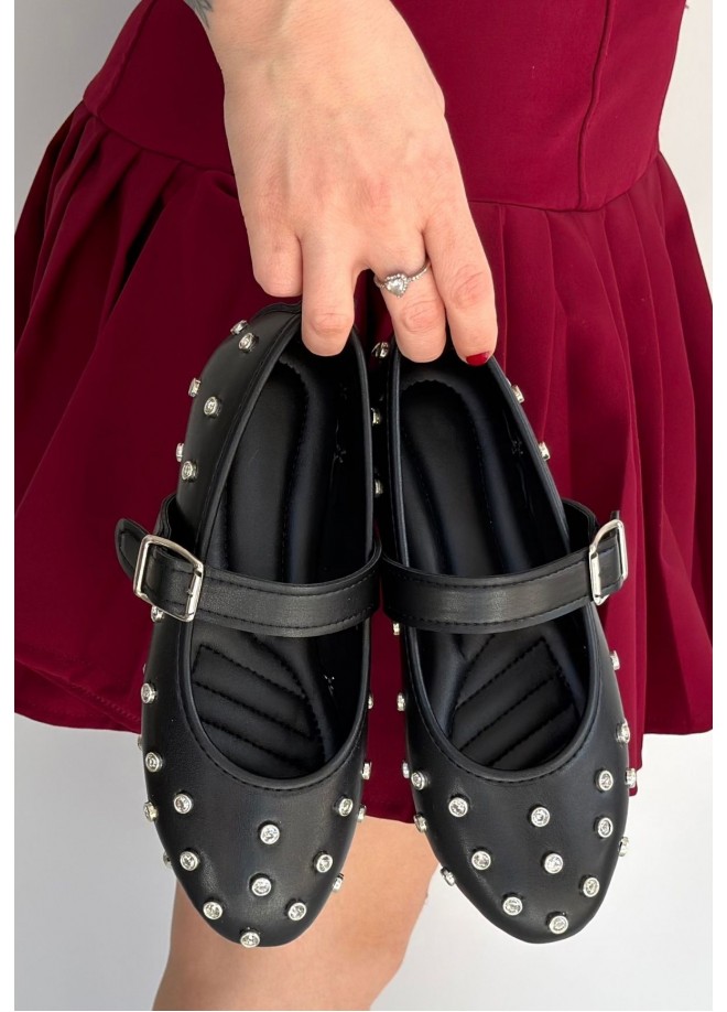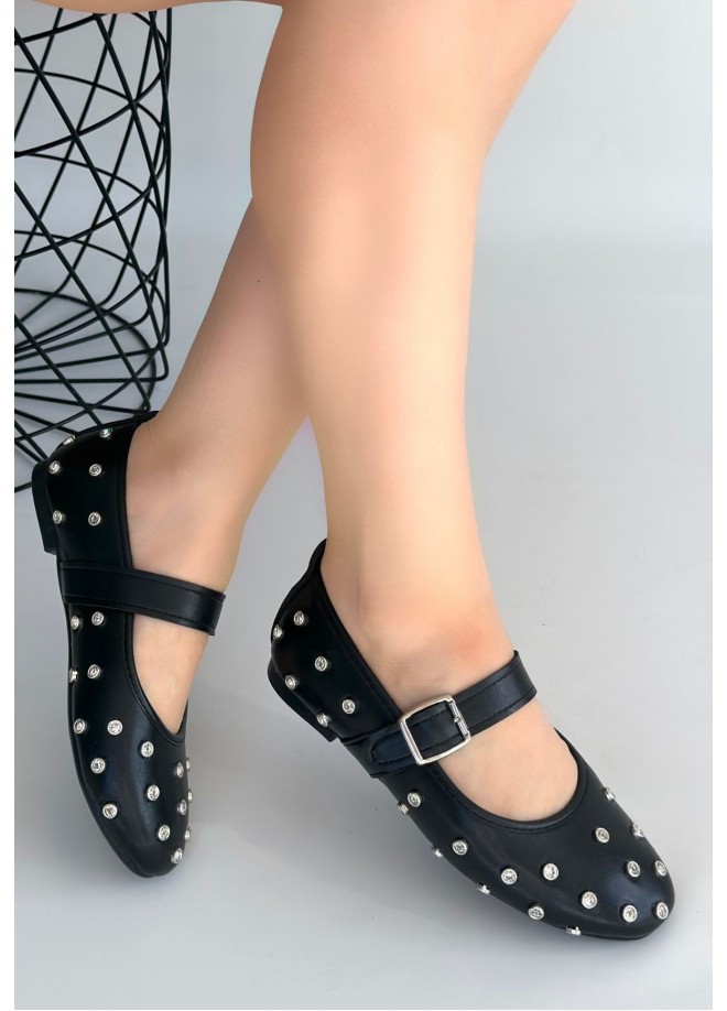 Ritta Siyah Cilt Kemerli Babet Ayakkabı