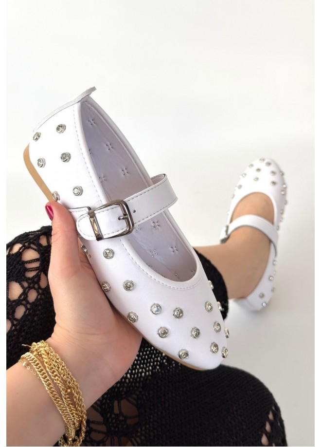 Ritta Beyaz Cilt Kemerli Babet Ayakkabı