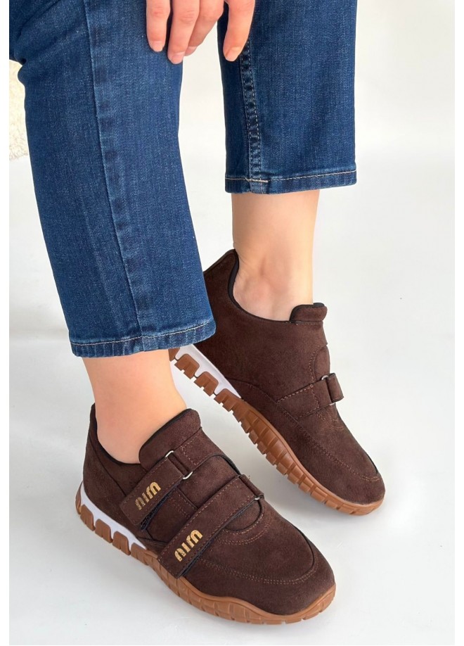Tunga Kahverengi Süet Cırt Cırtlı Spor Ayakkabı