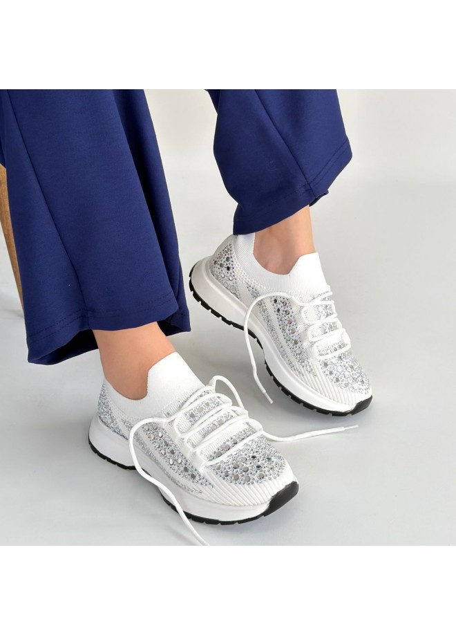 Ceas Beyaz Triko Bağcıklı Spor Ayakkabı