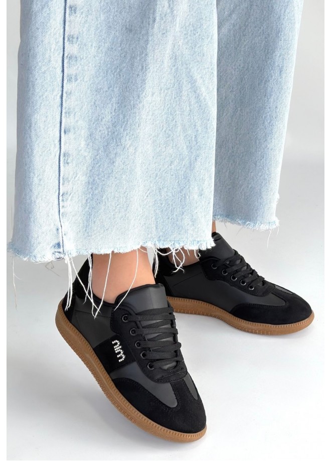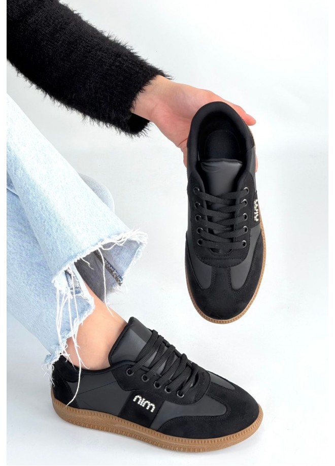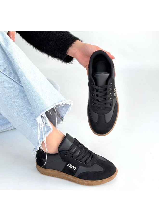 Lunga Siyah Cilt Bağcıklı Spor Ayakkabı