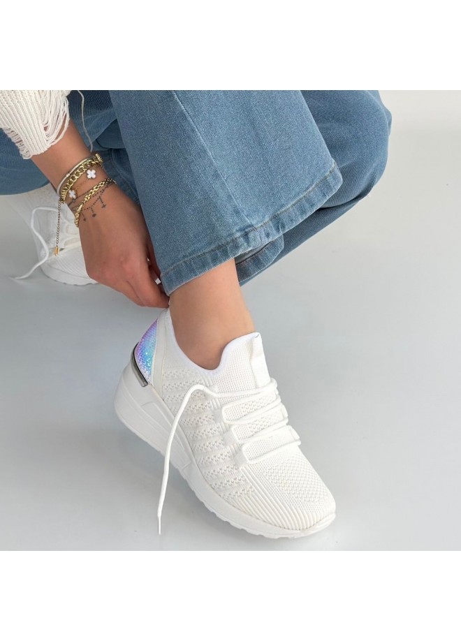 Weor Beyaz Triko Bağcıklı Spor Ayakkabı