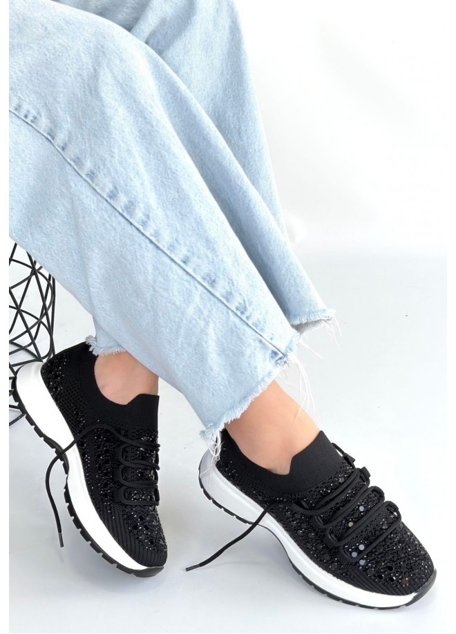 Ceas Siyah Triko Bağcıklı Spor Ayakkabı