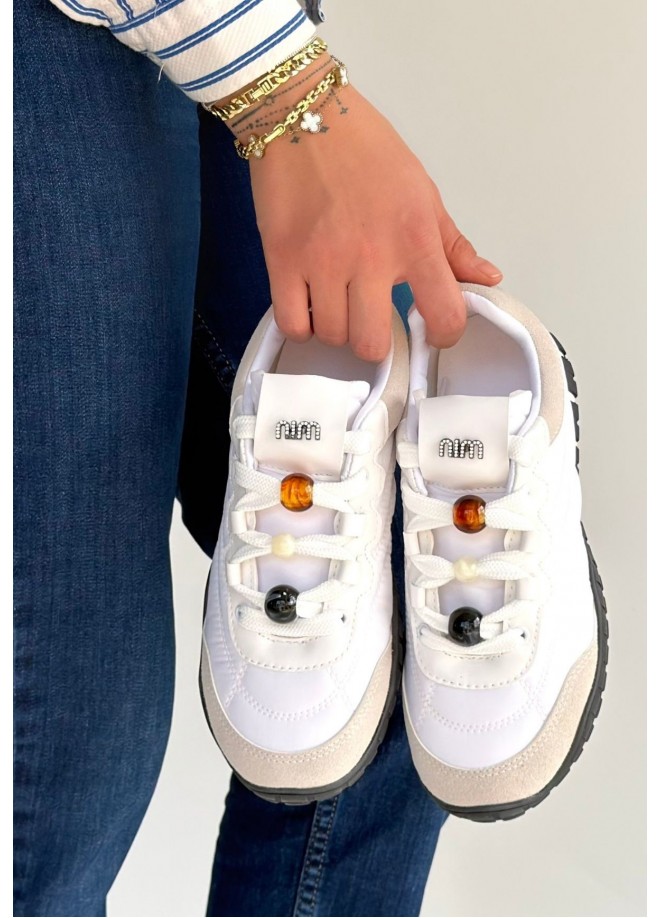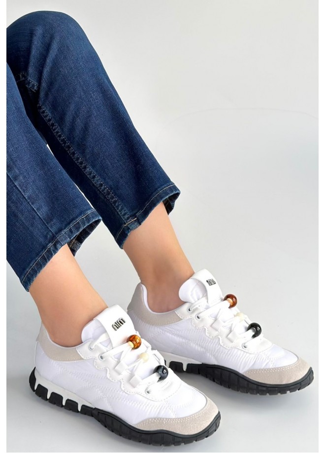Tues Beyaz Nubuk Bağcıklı Spor Ayakkabı